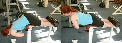 - Región lumbar o "Lumbares" (propiamente dicho): en posición decúbito prono (acostado ventral o "boca abajo") elevar los hombros (y/o los pies simultáneamente) contrayendo los músculos de la región lumbar.