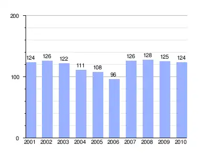 Población de derecho (2001-2010) según los censos de población del INE a 1 de enero de cada año.[4] |