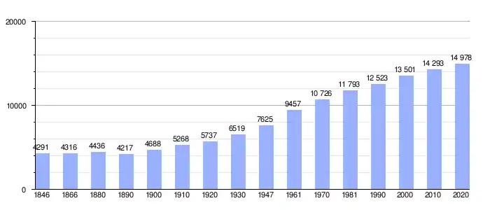 Todos los datos históricos relativos al actual municipio, el siguiente gráfico refleja su evolución demográfica, incluyendo municipios después de efectuada la fusión el 1 de enero de 1977.