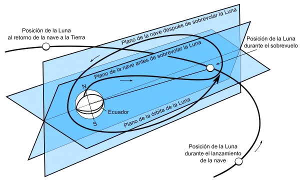La maniobra de asistencia gravitatoria se utilizó por primera vez en 1959, cuando la Luna 3 fotografió la cara oculta de la Luna de la Tierra. Después del lanzamiento desde el Cosmódromo de Baikonur, Luna 3 pasó por detrás de la Luna de sur a norte y se dirigió de nuevo a la Tierra. La gravedad de la Luna cambió la órbita de la nave espacial; también debido al propia movimiento orbital de la Luna, el plano orbital de la nave espacial fue también modificado. La órbita de retorno se calculó de manera que la nave espacial pasó de nuevo sobre el hemisferio norte, donde se encuentran las estaciones de tierra soviéticas. La maniobra se basó en la investigación realizada bajo la dirección de Mstislav Keldysh en el Instituto Steklov de Matemáticas.[1][2]