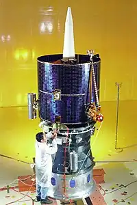 La nave era un tambor de grafito-epoxi, 1,36 m (4,5 pies) de diámetro y 1,28 m (4,2 pies) de alto, con tres radiales de 2,5 m (8,2 pies) auges instrumento. A 1,1 m (3,6 ft) de extensión en la final de uno de los brazos de 2,5 m celebrada el magnetómetro. De masa inicial total (lleno de combustible) era de 296 kg (650 lb). Es de giro estabilizado (velocidad de giro nominal de 12 rpm), con su eje de rotación normal al plano de la eclíptica. La nave fue controlada por seis monopropelentes propulsores de hidrazina 22-Newton (dos a popa, dos adelante y dos tangenciales). De tres tanques de combustible montado en el interior del tambor celebró 138 kg (300 lb) de la hidracina a presión con helio. El sistema de alimentación consistía en el cuerpo montado en las células solares que producen un promedio de 186 W y un 4,8 A • h batería de NiCd recargable. Las comunicaciones eran a través de dos transpondedores en banda S, una ranura, por etapas a mediano matriz de ganancia de la antena de enlace descendente, y una omnidireccional antena de baja ganancia para el enlace descendente y ascendente. El ordenador de a bordo era un Harris 80C86 con 64 kilobytes de EEPROM y 64 kilobytes de memoria RAM estática. Todo el control era de la tierra, haciéndose eco de la computadora de cada comando a la tierra para la verificación de allí. Una vez que el comando se ha verificado en tierra, un "ejecutar" desde el suelo le dijo al equipo para continuar con la ejecución del comando. El equipo de telemetría de datos construida como una combinación de datos de inmediato y también leer de un buffer de cola circular que permite el equipo para repetir los datos que había leído 53 minutos antes. Este simple registrador de estado sólido, aseguró que todos los datos recogidos durante los períodos de apagón de las comunicaciones que se reciban, siempre que el apagón no fue más de 53 minutos.