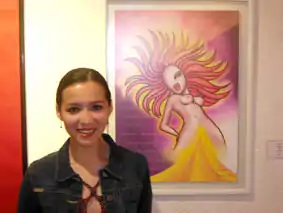 Lunara junto a una de sus obras.