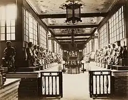 Un luohan —a menudo escrito luóhàn— es el término chino para un arhat, uno de los discípulos históricos de Buda. A medida que se desarrolló la tradición budista, y especialmente en los países budistas de Asia oriental, la cantidad de arhats o luohans tendió a aumentar, y al menos los más importantes fueron considerados como casi bodhisattvas o seres completamente iluminados, dentro de una amplia gama de seres sobrenaturales y potestades.[4] De acuerdo con la tradición budista, grupos de 16, 18 o 500 luohans esperaban la llegada de Maitreya, el futuro Buda,[5] y estos grupos se usaban con frecuencia en el arte budista del Asia oriental. La mayoría de los estudiosos piensa que el conjunto completo tuvo figuras para la agrupación principal china típica de Dieciséis o Dieciocho arhats, aunque William Watson describe esta «suposición usual» como «especulativa». Estas y otras agrupaciones más pequeñas de seis u ocho recibieron nombres y personalidades en la tradición budista.[6]