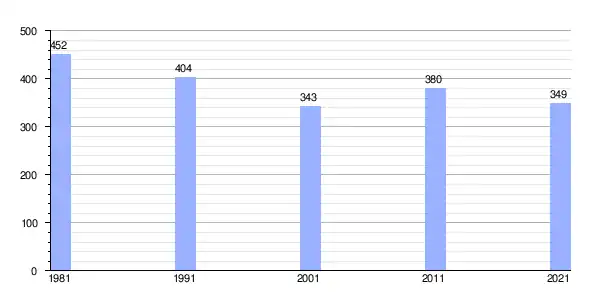 | Gráfica de evolución demográfica de Lupiñén Ortilla[9] entre 1981 y 2021 |