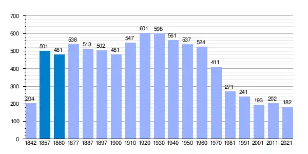 | Gráfica de evolución demográfica de Málaga del Fresno[2] entre 1842 y 2021 |