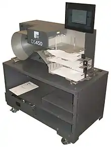 El escrutinio central se puede realizar a mano, y en algunas jurisdicciones, el escrutinio central se realiza utilizando el mismo tipo de máquina de votación que se utiliza en los lugares de votación, pero desde la introducción del sistema de votación con tarjeta perforada Votomatic y el sistema electrónico de recuento de votos Norden en el En la década de 1960, los tabuladores de papeletas de alta velocidad se han utilizado ampliamente, particularmente en las grandes jurisdicciones metropolitanas. En la actualidad, los escáneres de alta velocidad para productos básicos a veces cumplen este propósito, pero también se encuentran disponibles escáneres de papeletas para propósitos especiales que incorporan mecanismos de clasificación para separar las papeletas contadas de las que requieren interpretación humana.[40]