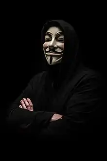La máscara de Guy Fawkes es la representación de un conspirador católico inglés,[1] miembro de la conspiración de la pólvora, quien intentó volar la Cámara de los Lores en Londres en 1605, conocido como Guy Fawkes. El uso de la máscara como efigie tiene largas raíces como parte de las celebraciones de la Noche de Guy Fawkes.