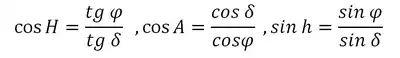 - PZ = 90° - φ, Z = 180° - A