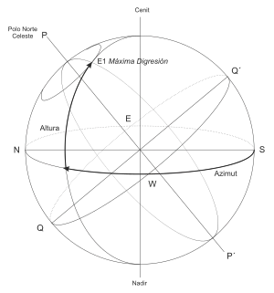 Si estas condiciones se producen, la variación del azimut de la estrella se realiza entre un máximo y un mínimo comprendido entre 90° y 270° sexagesimales. Estas dos posiciones en el movimiento aparente o movimiento diurno del astro son las máximas digresiones.[1]