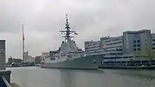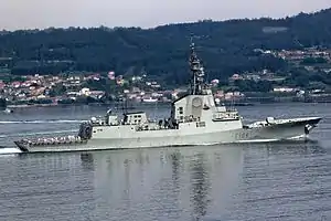 ![]() La fragata Méndez Núñez en la ría de Pontevedra en el año 2017. | ||