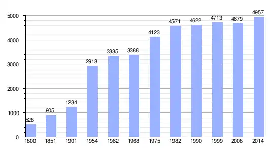 Los datos demográficos contemplados en este gráfico de la comuna de Mézidon-Canon[4] se han cogido de 1800 a 1999 de la página francesa EHESS/Cassini, y los demás datos de la página del INSEE.[5]