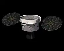4,1 m de diámetro, excluyendo los paneles solares, 5,2 m de diámetro estibado 19 m con las alas desplegadas |