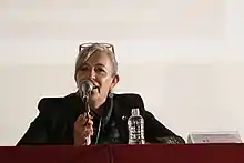 ![]() Mónica Lozano Soto durante la reapertura del Cine Villa Olímpica | ||
