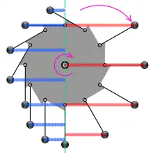 - Una máquina de movimiento perpetuo del tercer tipo suele ser (pero no siempre)[5] definido como aquel que elimina por completo la fricción y otras fuerzas disipativas, para mantener el movimiento para siempre debido a la inercia de su masa (Tercera en este caso se refiere únicamente a la posición en el esquema de clasificación anterior, no a la tercera ley de la termodinámica). Es imposible fabricar una máquina así,[6][7] ya que la disipación nunca puede eliminarse por completo en un sistema mecánico, por mucho que un sistema se acerque a este ideal (véanse ejemplos en la sección Baja fricción).