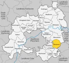 Se encuentra ubicado en el centro del estado, en la región de Karlsruhe, en la parte septentrional de las montañas de la Selva Negra, cerca de la orilla del río Enz —un afluente izquierdo del río Neckar.