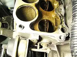 - Efecto Venturi: A bajas rpm, la velocidad del flujo del aire se aumenta dirigiendo el aire por una zona de capacidad limitada. Cuando la carga aumenta se abre un camino más amplio para que entre mayor cantidad de aire a la cámara. En los diseños con doble árbol de levas en cabeza (DOHC), el conducto de aire suele interconectarse entre válvulas de admisión separadas, permitiendo que se excluya el camino más corto, desactivando la propia válvula de admisión.