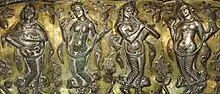 Bajo el reinado de los Sasánidas, el término en persa medio huniyāgar se utilizó para referirse a un juglar.[3] La historia de la música Sasani está mejor documentada que la de los períodos anteriores, y es especialmente evidente en los textos Avesta. La recitación del texto Sasánida Avesta de Vendidād ha sido conectado a la trompeta Oxus. El mismo paraíso del Zoroastrismo fue conocido como la "Casa del Canto" (garōdmān en persa medio), "donde la música daba la alegría perpetua". Los instrumentos musicales no fueron usados en el culto formal de zoroastrianos, sino que se utilizaban en las fiestas. La escena musical sasánida está representada especialmente en vasos de plata y algunos relieves de pared.[2]