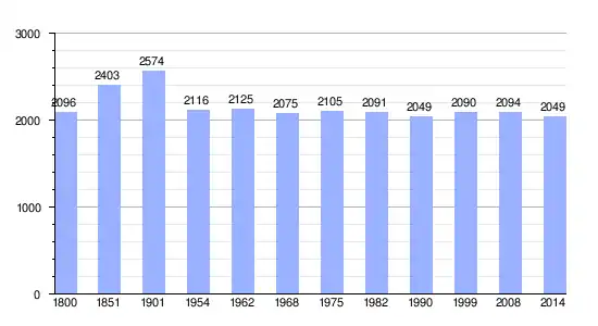 Los datos demográficos contemplados en este gráfico de la comuna de Mûr-de-Bretagne[4] se han cogido de 1800 a 1999 de la página francesa EHESS/Cassini, y los demás datos de la página del INSEE.[5]