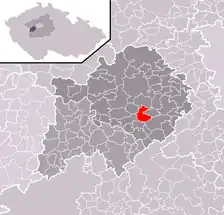 Se encuentra ubicada al oeste de la región y de Praga, en la cuenca hidrográfica del río Berounka —un afluente izquierdo del río Moldava—, y cerca de la frontera con la región de Pilsen.[1]