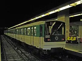 ![]() Un tren MF-67 renovado en la estación Gallieni de la línea 3 | ||