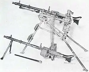 El trípode pesado (MG 34 Laffette) incluía varias modificaciones, como una mira especial para realizar fuego indirecto. Las patas del trípode podían extenderse lo suficiente para ser empleada como arma antiaérea.