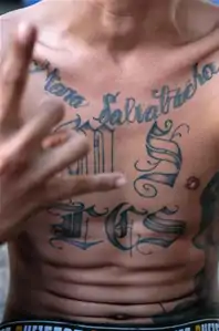 Muchos miembros de la Mara Salvatrucha se hacen varios tatuajes para demostrar su pleitesía a un líder salvatrucho. Entre los diseños se incluyen «MS», «Salvatrucha», el «Devil Horns», el nombre de alguno de sus líderes, y otros símbolos.[45] Esta costumbre, que en los inicios de la pandilla era muy usual, se ha ido reduciendo para evitar ser identificados, debido a sus actividades criminales.[46][47]