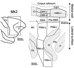 - Boussaoud, D.; Tanné-Gariépy, J.; Wannier, T.; Rouiller, E. M. (2005). «Conexiones callosas de las áreas premotoras dorsales versus ventrales en el mono macaco: Un estudio de rastreo retrógrado múltiple». BMC Neuroscience 6: 67. PMC 1314896. PMID 16309550. doi:10.1186/1471-2202-6-67.