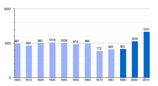 Población de hecho (1900-1981) según los censos de población del INE. Población de derecho (1990-2010), población según el padrón municipal, datos del INE. |