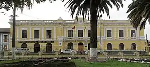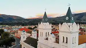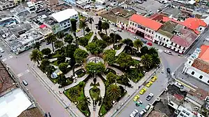![]() Desde arriba hacia abajo; Vista panorámica de la Ciudad de Machachi, Parque Central Machachi y La Iglesia Matriz de Machachi.