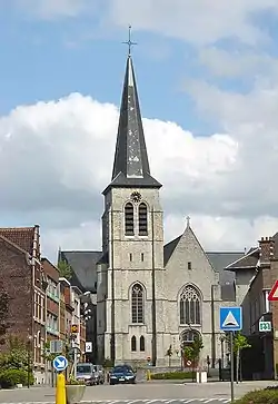 Su iglesia está decorada mediante esgrafiado, obra del artista modernista de Bruselas Gabriel van Dievoet.