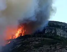 Su vegetación es característica de bosque mediterráneo degradado con alta abundancia de pino blanco (Pinus halepensis) en las zonas bajas y matorrales esclerófilos en las zonas altas. Aún en las zonas de sombra se pueden encontrar algunas poblaciones de alcornoque (Quercus suber) y encina (Quercus ilex). Antiguamente se utilizó el terreno para el cultivo de la vid, pero abandonadas probablemente por la plaga de la filoxera de finales del siglo XIX. Durante los últimos años, (década de los 1950 y 2004) se han producido incendios forestales que empeoraron la situación.