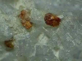 Más raramente pero también ha sido encontrado en meteoritos de hierro y de condritas carbonáceas.[4]