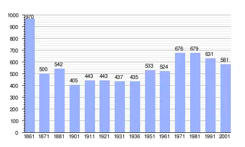 | Gráfica de evolución demográfica de Madesimo entre 1861 y 2001 |