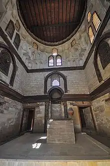 La Madrasa de Al-Nasir Muhammad es una de las tres únicas madrasas de El Cairo que albergaba las cuatro escuelas de jurisprudencia sunitas.[4] La madrasa alberga el último mihrab de estuco (nicho que indica la dirección de la oración ) en Egipto, único por sus protuberancias de estuco en relieve en forma de huevo en alto relieve con adornos perforados que decoran el capó del mihrab[4] El estilo recuerda mucho a la talla de estuco producida en Tabriz, Irán, bajo el dominio de los iljaníes mongoles, y los historiadores han sugerido que fue elaborado por artistas del Irán mongol o Tabriz.[2][3] Aparte del mihrab, relativamente poca decoración ha sobrevivido en general en el interior del edificio de al-Nasir Muhammad.[3]