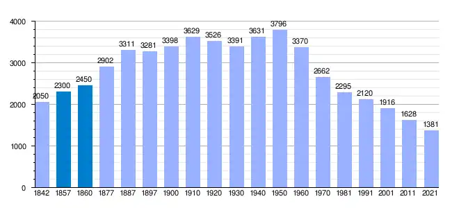 | Gráfica de evolución demográfica de Madrigal de las Altas Torres[7] entre 1842 y 2021 |