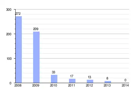 | Gráfica de evolución de la deuda viva del ayuntamiento entre 2008 y 2014 |