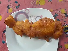 El bocado se suele confundir con el aborrajado colombiano, aborrajado significa un plato de plátanos rellenos de queso rebozados y fritos como Aborrajado con Chicharrón, que incluye chicharrón, además de la receta básica de plátanos y queso, pasta de guayaba, que se incluye como parte del relleno.[6]