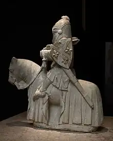 Por último, destaca el conjunto escultórico de la capilla de los Ferreiros, en la iglesia matriz de Oliveira do Hospital, uno de los espacios funerarios góticos portugueses más importantes; clasificado como Monumento Nacional en 1936. Encargado por Domingos Joanes, este notable conjunto incluye un retablo, una imagen de la Virgen y el Niño, las tumbas de Domingos Joanes y su esposa, Domingas Sabachais, así como una escultura única, Caballero Medieval o Domingos Joanes como caballero, en caliza, cuya policromía inicial desapareció. Sus dimensiones son 72 × 19,5 × 64,8 cm. Hay dos copias de esta obra, sin saberse a ciencia cierta cuál es el original y cuál la copia; la otra se encuentra en el Museo Nacional de Machado de Castro. Según Paulo Pereira, esta escultura es una de las representaciones escultóricas más originales del siglo XIV y «la representación más notable de un guerrero medieval del período gótico». Cuenta con un caballero con un casco de visera baja, armado con una maza, armadura sólida con cota de malla, espuelas, espada en la vaina y escudo, montando un caballo debidamente enganchado, simultáneamente para el combate o el desfile.[5][7]
