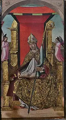 El trabajo de pintura del monumental retablo, formado por dieciocho tablas dedicadas a la vida de la Virgen y la pasión de Cristo más dos laterales de mayor tamaño en el sotabanco, con un santo obispo y un papa, debió de comenzar hacia 1496, pues en esa fecha se daba por terminado el trabajo de carpintería, y estaba completo al menos en su mayor parte en 1503.[1]