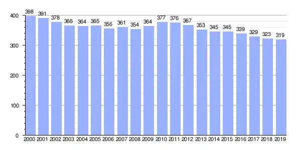 | Gráfica de evolución demográfica de Magalofes entre 2000 y 2019 |