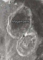 ![]() Imagen de la misión Lunar Orbiter 4 de Magelhaens (izquierda) y Magelhaens A | ||