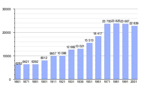 | Gráfica de evolución demográfica de Magenta entre 1861 y 2001 |