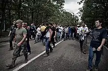 El sábado de Pentecostés, el festival comienza cuando los bueyes arrastran los robles, incluido el maggio y los postes para los cabrestantes, hacia el pueblo.[2]