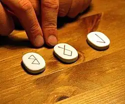 Es frecuente en los sistemas de adivinación actuales utilizar runas grabadas en fichas de loza, guijarros, vidrios o piedras pulidas. Usando las runas históricas o inventando otras, como la runa en blanco del sistema Ralph Blum. Varios autores, como Freya Aswynn y Diana Paxson, han intentado establecer una correlación directa entre la adivinación rúnica nórdica, las runas brujas, las runas alquimistas y las cartas del tarot y proponen el empleo de todos estos sistemas rúnicos, pero desaprueba el uso de cartas rúnicas, ya que las runas no son una herramienta esotérica que se deba barajar. Se debe mezclar y hacer sonar o susurrar (ruido que emiten las runas al chocar unas con otras).