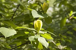 Es un híbrido compuesto por las especies Magnolia acuminata L. × Magnolia liliiflora Desr..