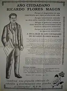 A finales del siglo XX, cuando el Ejército Zapatista de Liberación Nacional, en Chiapas se levantó en armas en 1994, reivindicó los planteamientos de los Flores Magón. En 1997 organizaciones indígenas y sociales, colectivos libertarios y ayuntamientos municipales del estado de Oaxaca declararon el "Año ciudadano Ricardo Flores Magón"[11] del 21 de noviembre al 16 de septiembre de 1998, la convocatoria justificaba: