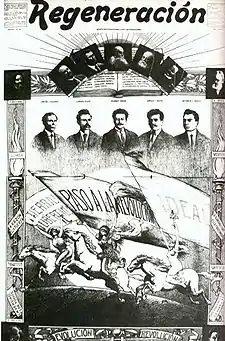 El combate a la tiranía alentado por los Flores Magón contravenía el discurso oficial de la "Paz Porfiriana" por lo cual los inconformes fueron calificados como los Revoltosos Magonistas[3] para aislarlos de toda base social y conservar la imagen de paz y progreso impuesta por la fuerza.