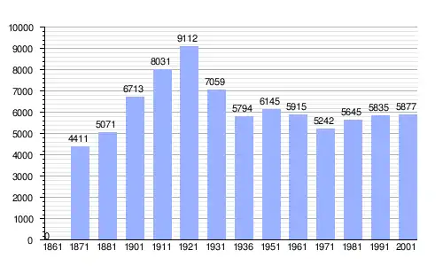 | Gráfica de evolución demográfica de Majano entre 1861 y 2001 |