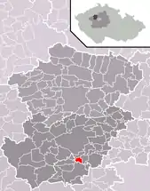 Se encuentra ubicada al noroeste de la región y de Praga, a poca distancia al norte del río Berounka —un afluente izquierdo del río Moldava—, y cerca de la frontera con la región de Ústí nad Labem.[1]