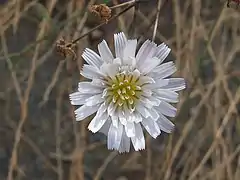 Es una hierba perenne que alcanza los 30 a 60 centímetros de altura desde un rizoma y caudex. Las hojas son variables en tamaño y forma y pueden ser lobuladas o no. La inflorescencia se encuentra en un capítulo con brácteas en forma de lanza. Las lígulas tienen 1 o 2 centímetros de largo y son de color blanco.